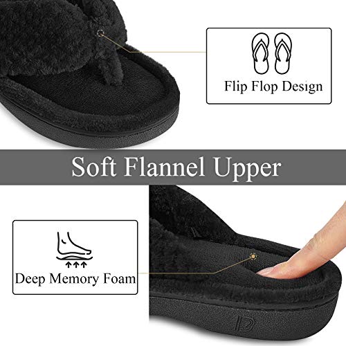 HOT ! DL Women's Flip Flop Memory Foam Slippers with Cozy Terry Lining Soft Thong Slippers Slip on House Shoes with Indoor Outdoor Arch Support Rubber Sole