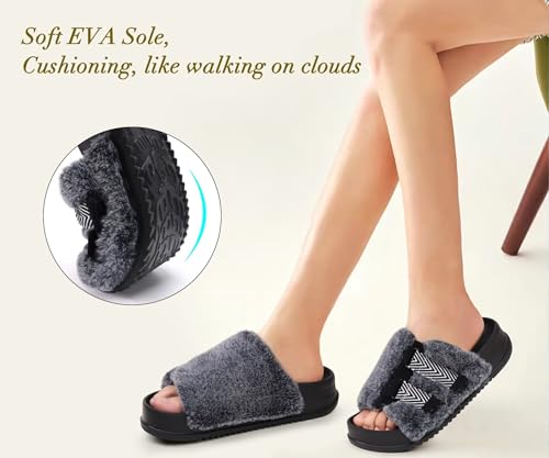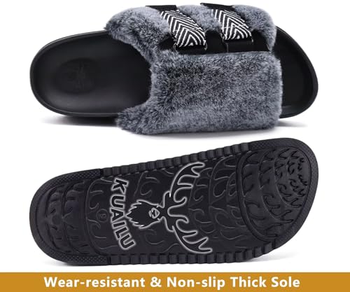 • ▶▶ADJUSTABLE & EASY SLIP ON/OFF : Woman Fur Wandals with qualited double micro suede straps, whether you have flat feet or high instep,narrow or wide feet.