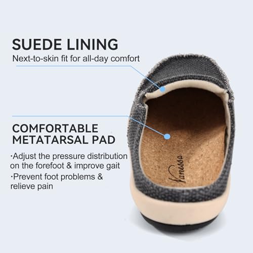 Vanessa Womens House Shoes with Arch Support, Orthopedic Casual Slippers with Comfortable Velvet Lining, Slip On Slipper Shoes for Women Indoor & Outdoor Walking 5