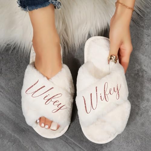 HOT ! Wifey Cozy Slippers, Wife Slippers for Women, Wifey Gifts, Wedding Shoes for Bride, Birthday Gifts for Wife from Husband