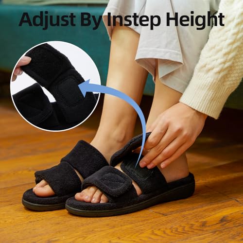 Magtoe Adjustable House Slippers for Women Arch Support Open Toe Indoor Slip on Slides Shoes with Memory Foam Indoor Use 6