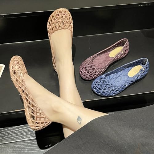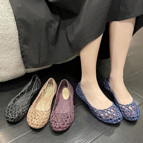 HOT ! Jelly Mesh Ballet Flats for Women Wide Jelly Sandals Clear Hollow Water Slides Slip On House Slippers Foldable Lightweight Breathable Low Top Dressy Ballerina Shoes Summer Beach Party Cruise Vacation
