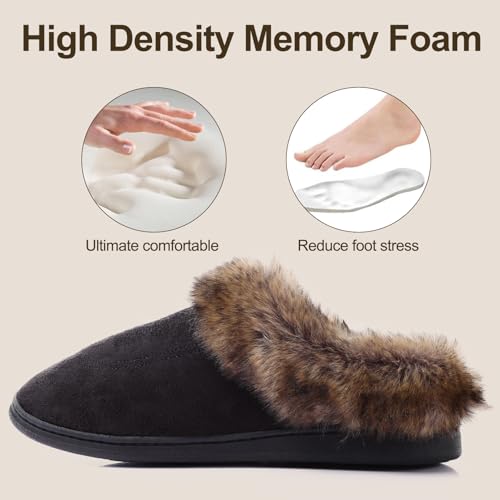 Women's House Platform Slippers Ladies Microsuede Fuzzy Cozy Slippers with Warm Faux Fur Collar & Non-slip Memory Foam Rubber Sole for Indoor Outdoor 7