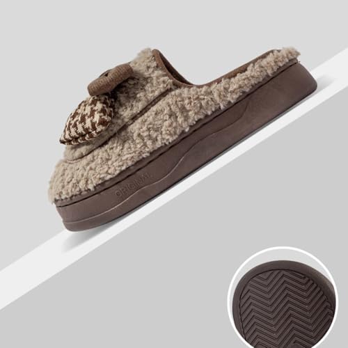 Women's Fleece Bow House Slippers Soft Plush Comfy Cozy Slip On Indoor Slipper with Bows Winter Warm Cute Bow Tie Fuzzy Bedroom Shoes Non Slip 7