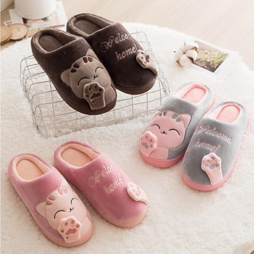HOT ! Fuzzy Cat Slippers House Slippers for Women Men Non Slip Cute Cat Animal Plush Slip on Winter Warm Bedroom Shoes