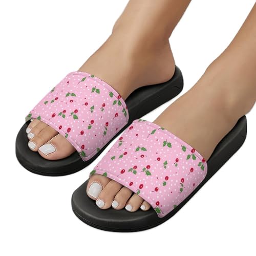 Cute Cherry Pattern House Slippers for Women Men Lightweight Open-toe Slide Shoes for Bathroom Swimming Beach 7
