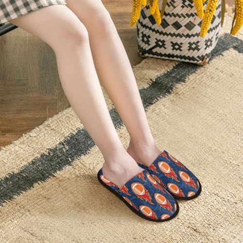 • American Football And Fire Flames Pattern Slippers: The Upper Of This Slipper Is Made Of High-Quality Soft Plush Fabric,And The Sole Is Made Of Eva Material,Which Is Light,Wear-Resistant And Soft,Not Only Warm,But Also Very Comfortable To Wear. Easy To Clean And Easy To Carry,It Is A Must-Have For Business Trips,Travel,And Outings