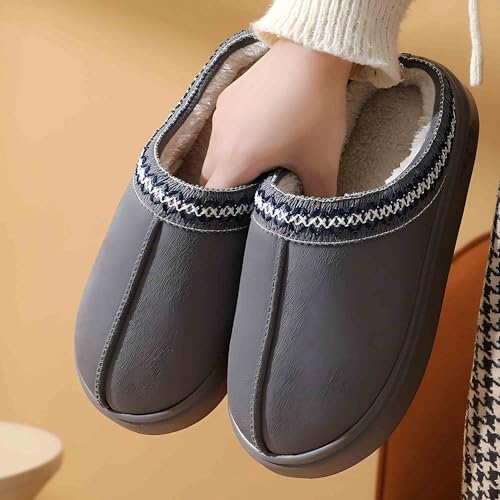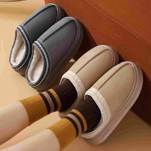 • Fashionable new style: This slipper features a breathable synthetic suede upper with a soft fleece lining, and exquisite stitching craftsmanship gives it a stylish appearance.