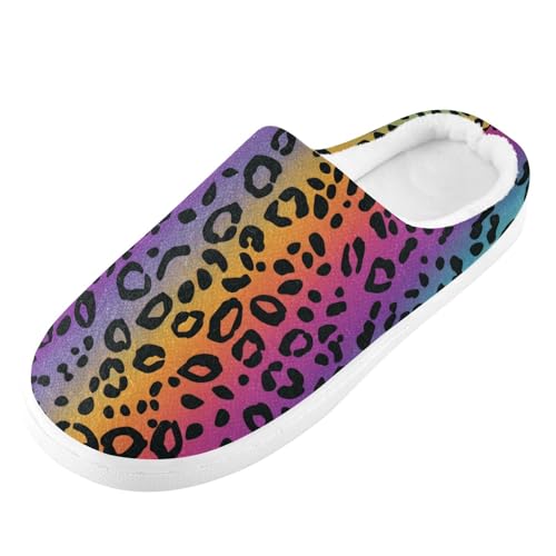 JUNZAN Rainbow Leopard Printed Womens House Cotton Slippers Non Skid Memory Foam Mens Slippers for Spa Funny Presents 6-7 5