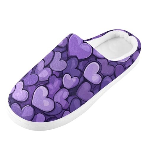 HOT ! JUNZAN Purple Hearts Day Purple Hearts Mens House Cotton Slipper Non Skid Memory Foam Ladies Slippers for Indoor Birthday Presents 6-7