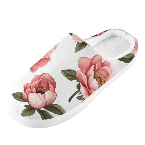 Retro Peonies White Womens Cotton Slippers Soft Memory Foam Home Slippers for Spa Funny Presents 6-7 4