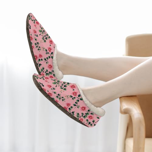 Pink Floral Pattern Slippers for Women Slipper Socks Soft Fuzzy House Slippers Shoes for Indoor Bedroom, Winter Cozy Christmas Gifts 5