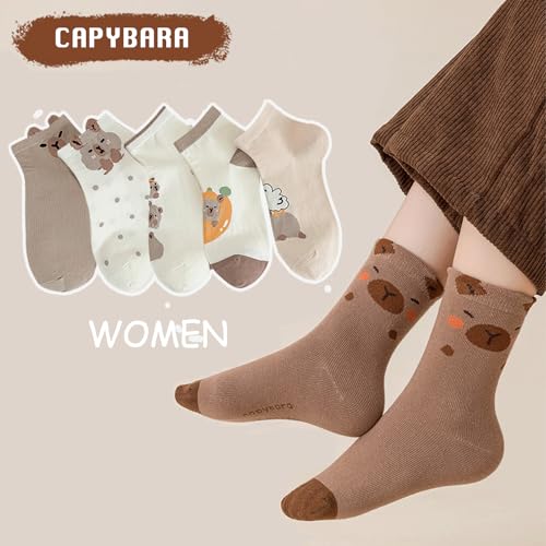 Capybara Slippers for Women With 5 Pcs Cute Socks Plush Funny Cartoon Slide Sandals Indoor Outdoor Cozy House Shoes 4