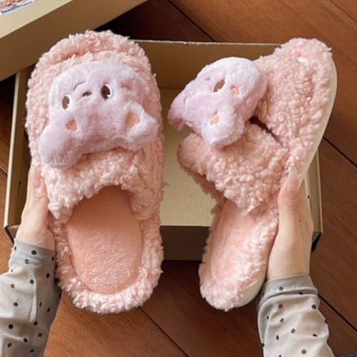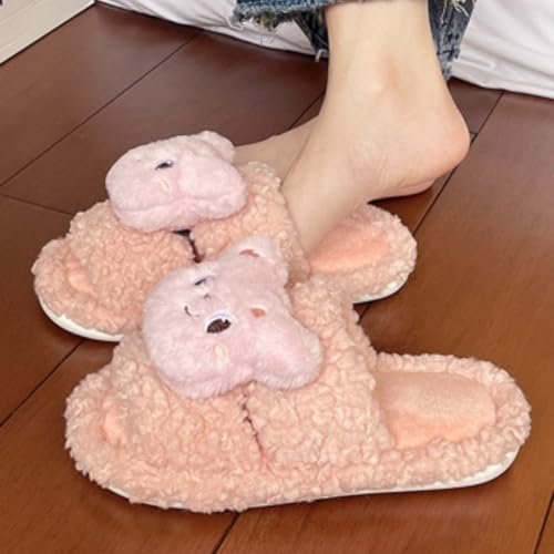 ZQW Women's Cute Cozy Teddy Bear Fleece Slippers Kawaii Fluffy Slides Warm Non-Slip Chunky Furry House Shoes Winter Indoor 7