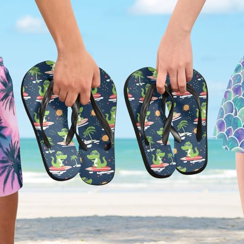 ALAZA Cute Green Crocodile Surfing Flip Flops for Women Fashion Beach Slippers Comfort Mens Flip Flops Non-Slip Rubber Shower Slippers Sandal for Hotel Travel Sport,XS 3