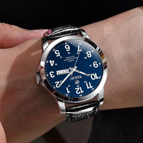Watches for Men Leather Large Arabic Numerals Mens Watches Waterproof Band with Date Quartz Men's Wrist Watch 4