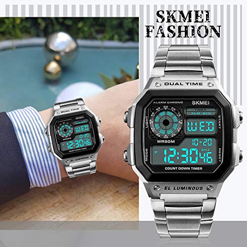 SKMEI Wrist Watch for Men, Digital Sports Waterproof Watch with Dual Time Chronograph Countdown Alarm Backlight 7