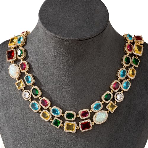 HOT ! Tennis Necklaces for Men, Dainty 18K Gold Plated Diamond Tennis Choker Necklace Cubic Zirconia Chain with Emerald, Ruby, and Aquamarine Gemstones for Men Bride Birthday Wedding Valentine's Day Gifts