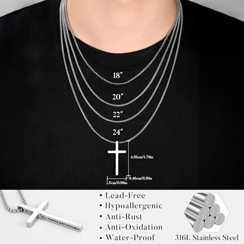 Ursteel 2 Pcs Black Silver Cross Necklace for Men - Inspirational Bible Verse Cross Chain for Men Stainless Steel Cross Pendant Necklace for Men Gifts, Box Chain 18-24 Inch 4