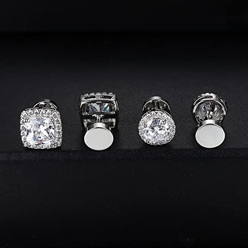 FASACCO 14K Flat Back Round Square Stud Earrings for Men Women Large Big Cubic Zirconia Stud Earrings Mens Earrings Flatback Earrings 4