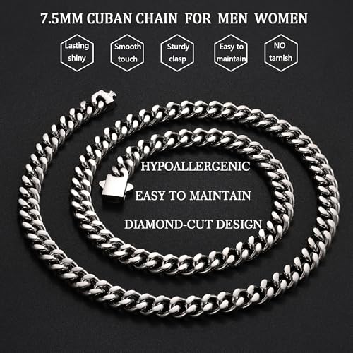 • Style: Classic cuban mens chain necklaces with diamond-cut craftsmanship, More reflective and shiny than regular standard stainless steel men's necklaces