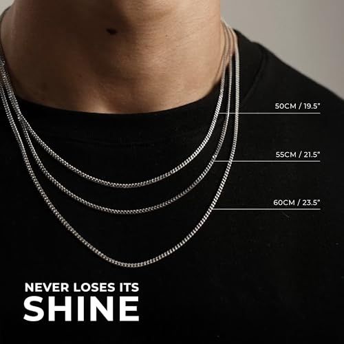 CRAFTD | Silver Curb Link Chain | Durable Rhodium & 316L Stainless Steel | Waterproof, Heat & Sweat Resistant | Gifts for Men | Men's Jewelry | 2