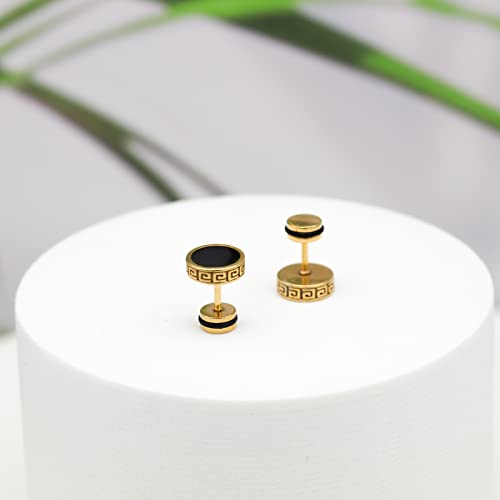 2025 Upgraded Hypoallergenic earrings for men,Mens surgical steel black stud earring jewelry,Great Wall wall grain round cake shape,Single black gel 0.4 inches wide 6