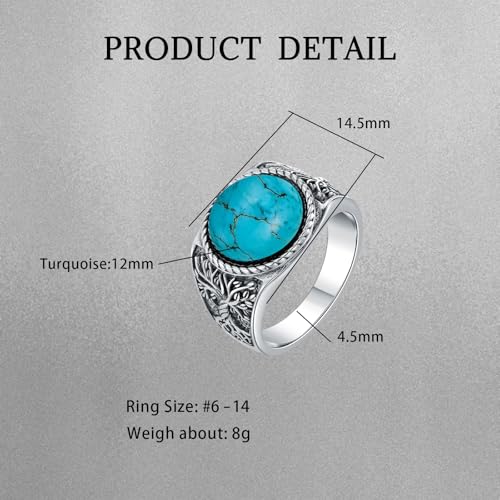 Men's Tree of Life Ring 925 Sterling Silver Round Black Onyx/Turquoise Vintage Band, Spiritual Jewelry for Engagement Wedding Anniversary Father’s Day Gift 6