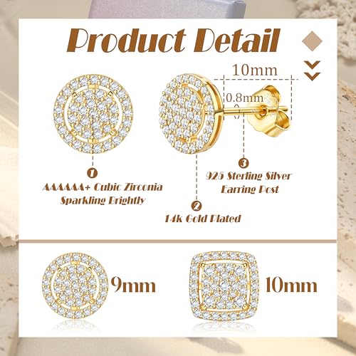 • QUALITY MATERIAL: The men earrings are made of 925 sterling silver with 14K gold plated, lead free and nickel free, non tarnish for a long time, ideal for sensitive ears, crafted 5A faux diamond, clear and shiny.