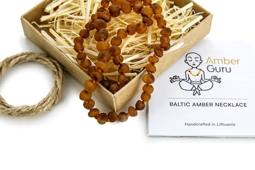 • SAFE TO WEAR. Knotted beads and a screw clasp make the amber necklace durable and safe to wear. Do not use it as a replacement for teething toys or teethers.