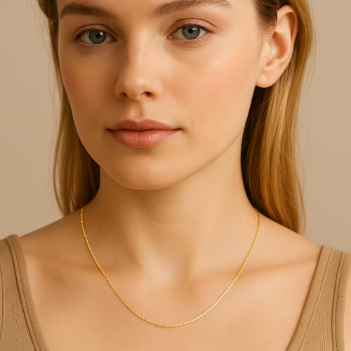 Real 14k Solid Yellow/White/Rose Gold Box Chain Link Necklace with Lobster Claw Clasp, Jewery Gift for Her Him, Thickness 0.7-1.2 mm, Length 16-24 inch 2