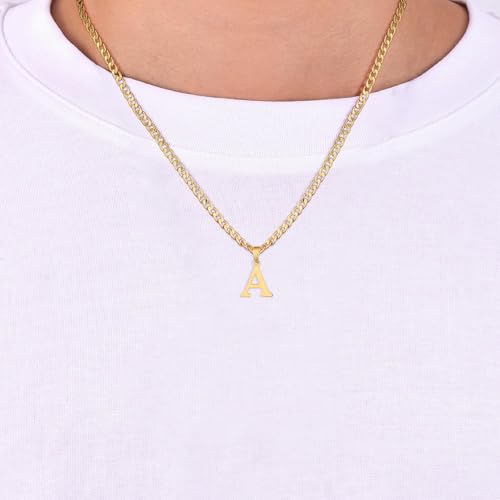 HOT ! Initial A-Z Letter Pendant Necklace for Men 18K Gold Plated Capital Initial Necklace Cuban Link Chain 4mm 20 Inch Jewelry Gift