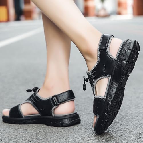 Fashion Men's Open-Toe Sandals, Classics Real Leather Hiking Sandals, Hollow Out Backpacking Beach Shoes 6