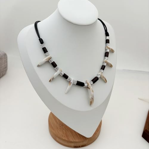 More information about Wolf Wood Beads Tooth Necklace for Men Women Tribal Caveman Adjustable Resin Tooth Pendant Necklace