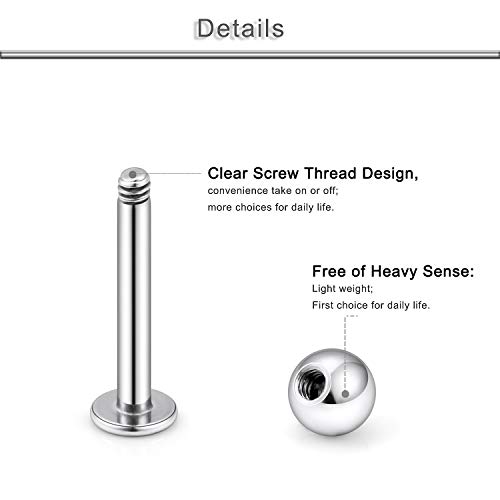 Yaalozei 20G 16G 14G 12G Lip Labret Monroe Medusa Ring Studs 316L Surgical Steel Tragus Helix Cartilage Earring Tongue Cheek Dimple Piercings Jewelry Bar Length 6mm 8mm 10mm 12mm 14mm 16mm 19mm 18PCS 4