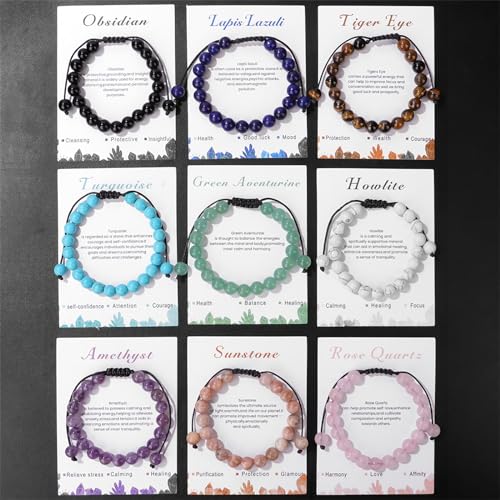 Healing Crystal Bracelet for Women 8mm Natural Stone Crystal Beaded Bracelets Adjustable Handmade Gemstone Bracelet Healing Jewelry Mother's Day Gifts for Women 4