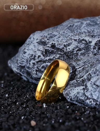 ORAZIO Stainless Steel Rings for Men Women 6MM 8MM Wedding Band Rings Silver/Black/Gold Domed High Polished Basic Wedding Bands Comfort Fit Size 6-14 6
