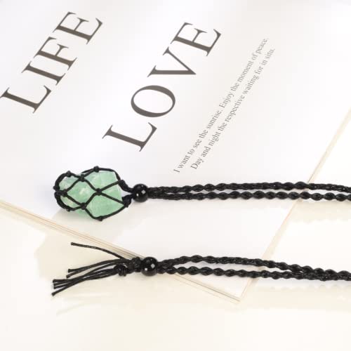 Anjiucc Natural Gemstone Crystal Pendant Necklace Stone Holder Necklace Cord Hand-Woven Necklace with Adjustable Length for Women Men 6