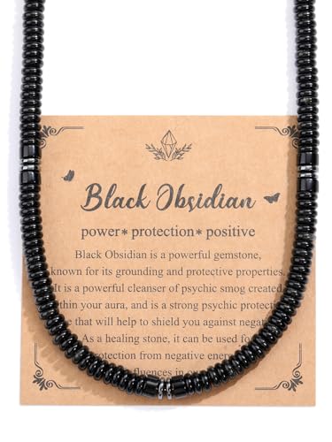 • MENS BEADED NECKLACE: This necklace is handmade of natural black obsidian, which is specially designed for men, suitable for daily wear, showing men's mature, fashionable and mysterious charm. Healing Crystals, polished black obsidian gemstone, long-term wearing of it has the effect of healing soul, Use for reiki, healing, meditation, chakra balancing, or ritual.