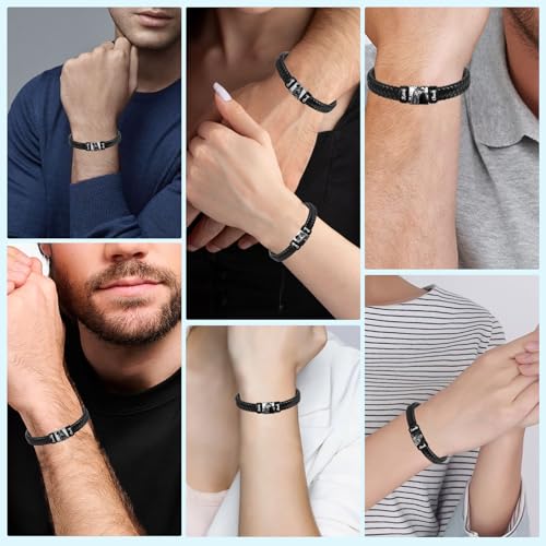 • Material and Size: This men's bracelet is made of high-quality PU leather and stainless steel, durable and suitable for daily and business wear. 8.3 inches long, 0.6 inches wide, suitable for most men's wrists