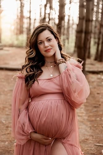 • Features:This maternity dress for photography is off shoulder,puffy long sleeve,A-line,slit,floor length and made of high-quality tulle. The maternity dress is perfect for pregnant mother who want a romantic and elegant atmosphere, the tulle is light and fluffy, perfect for a photo shoot!