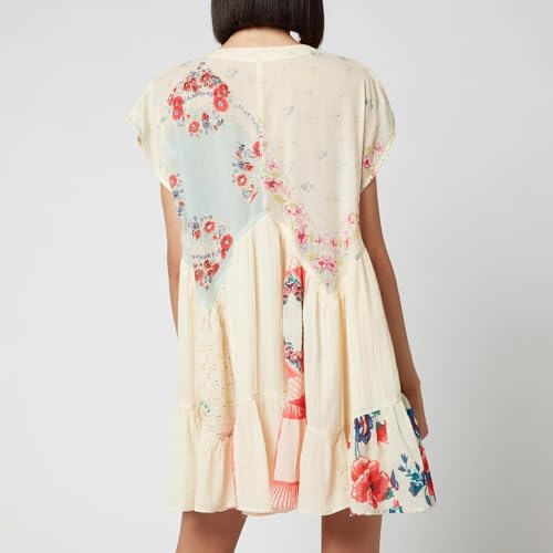 HOT ! Women Bohemian Floral Mini Dress Y2K Babydoll V Neck Short Dress Loose Fit Patchwork Dress Beach