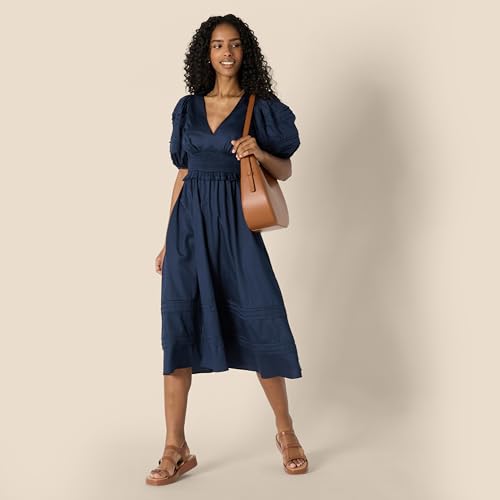 Amazon Essentials Women's Regular-Fit Cotton Sateen Puff Sleeve Midi Dress 6