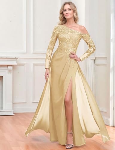 HOT ! Lace Chiffon Mother of The Bride Dresses Long Sleeve Off Shoulder Evening Gown for Women Formal