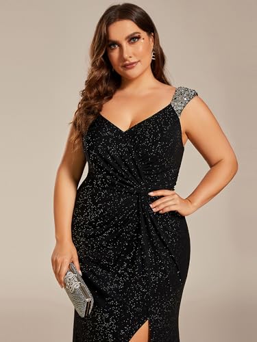 HOT ! Ever-Pretty Women's Stretchy V-Neck Sleeveless High Slit Glitter Bodycon Plus Size Ball Gowns Formal Dresses for Curvy Women
