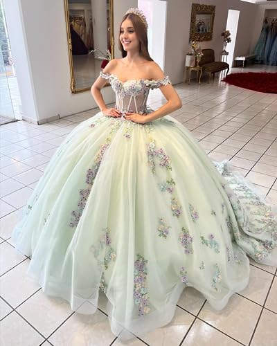 • Features:Luxury off shoulder lace quinceanera dresses puffy 2025 long, sparkly beaded prom dresses with train, tulle pearly evening gowns, women's plus size gorgeous ball gowns , princess sweet 15 16 dresses for women, glitter 3d floral sixteen birthday dresses.