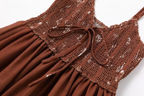 • 【Design】 Embrace retro cowgirl chic with a deep-V smocked neckline, adjustable spaghetti straps, and ruched bodice. The backless silhouette features ruffle accents and front drawstring ties for adjustable flair, while the high-waisted A-line skirt transitions from mini to knee-length for versatile styling.