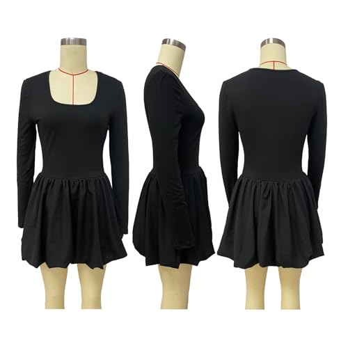 • Feature: This bubble mini dress features a sexy square neck, long sleeve, high waisted, hug closely to the waist, a line skirt, ruffle pleated hem, cute short length, stylish puffy dress, a trendy choice for date night club party outfits