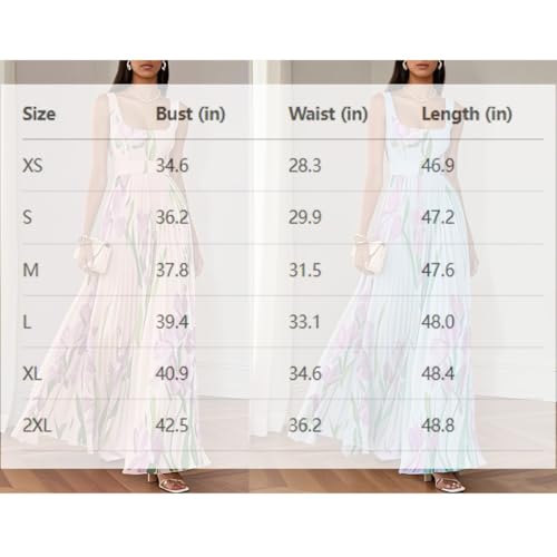 More information about Women's Square Neck Floral Dress-Elegant Pleated Maxi Dress with High Waist Sleeveless Design Women Wedding Guest Dress Boho