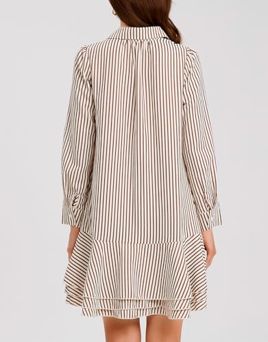 Ladyful Long Sleeve Striped Shirt Mini Dress for Women Button Down Ruffle Tiered Drop Waist Shift Tunic Short Dress 6